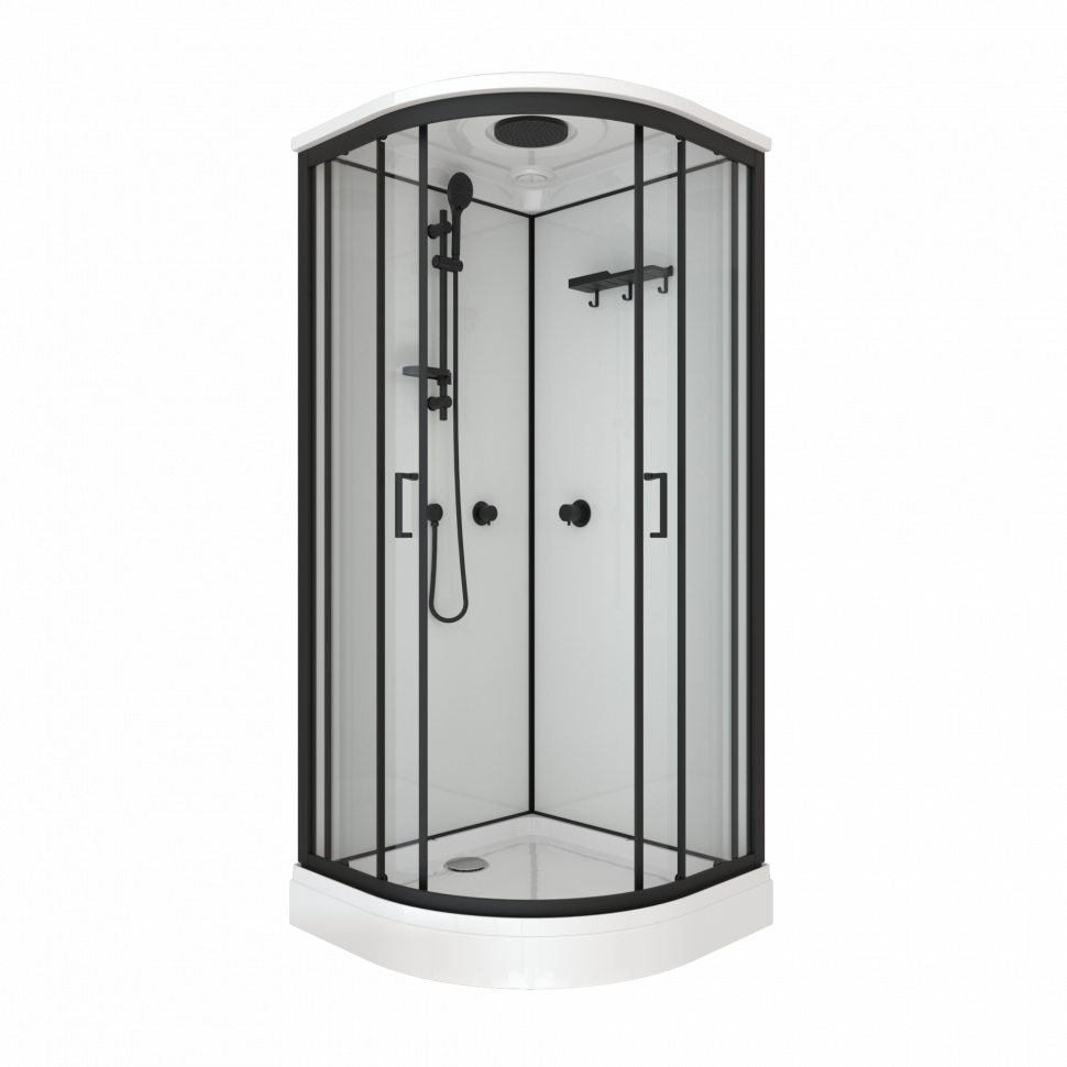 Поддоны душевых кабин имеют закладные из влагостойкого ЛДСП, выдерживают вес до 500 кг. и устанавливаются на стальной каркас с 5 точками опоры, что позволяет равномерно распределить нагрузку.